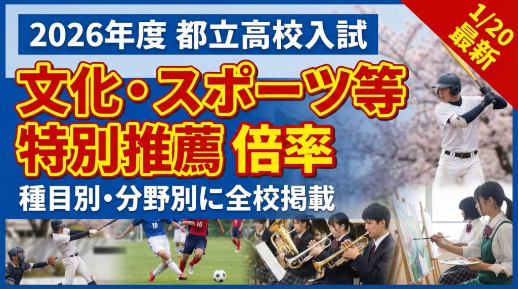 【2026年度都立高校入試】文化・スポーツ等特別推薦の倍率一覧|種目別・分野別の応募状況