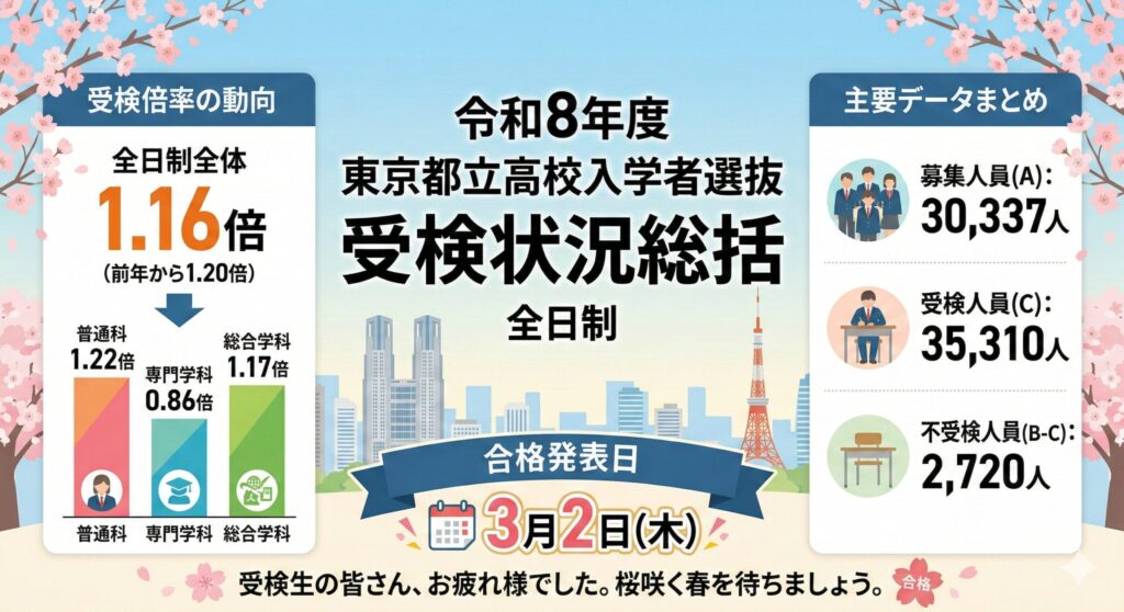 【2026年度都立高校入試】一般入試受検倍率全校一覧|調査の概況と前年比まとめ(普通科・専門科・総合科ほか)