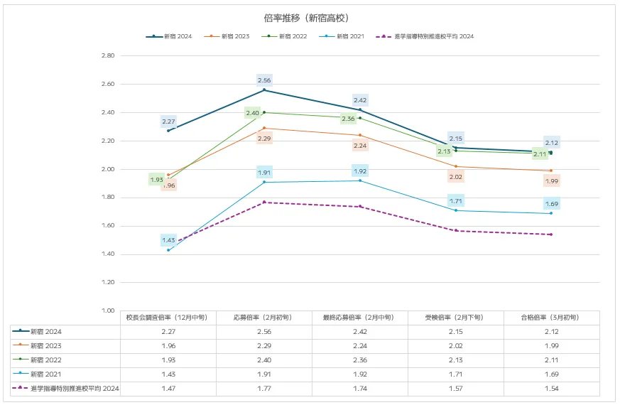 新宿高校の入試倍率推移分析(2021年~2024年)