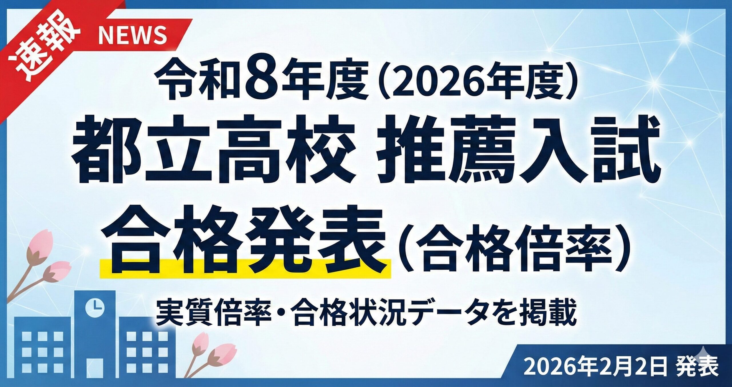 都立高校推薦入試の合格者が発表され、今年の実質倍率が確定しました。 推薦入試結果のポイントは、主に以下の3点です。