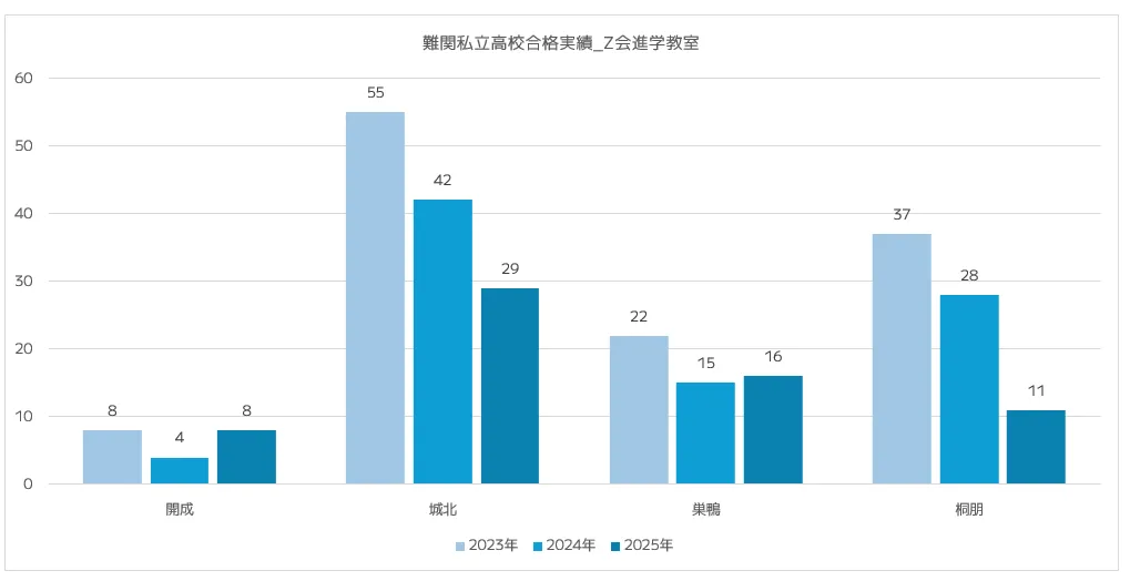 - 巣鴨高校:2023年22名→2024年15名→2025年16名(27.3%減少)
